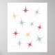 Viva suas paredes com este fabuloso poster de meio século da era atômica. Este design apresenta rajadas de estrelas em vermelho, azul, verde e amarelo e acentuadas com pontos pretos.