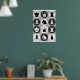 Poster de padrão de peças de xadrez preto e branco. Um padrão de xadrez na moda com ícones de rei, rainha, torre, cavaleiro, bispo e peão de xadrez em um impressão de poster de padrão quadrado de xadrez. Este presente de poster de xadrez legal e nerd é totalmente personalizável, adicione seu texto e imagens.