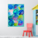 Uma pintura colorida de abstrato de cor d'água do artista Sacha Grossel com círculos redondos legal, verdes e roxos, num design de padrão para mostrar os padrões de cor de fusão. A cor de fundo é personalizável. Arte relaxante e relaxante.