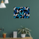 Poster Padrão Escuro Sem Costura com Borboletas Azuis Mor