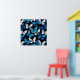 Poster Padrão Escuro Sem Costura com Borboletas Azuis Mor