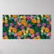 Poster padrão floral brilhante em um fundo verde. Vinta