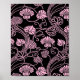 Poster Padrão Floral Retroativo Rosa em Preto