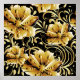 Padrão floral sem soldadura. Papel de parede 3d florescente. fundo de vegetação negra com floração de ornamentado. Superfície elegante com flores de ouro 3d desenhadas à mão folhas e ornamentos. Textura moderna do padrão do tecido. 3d, abstrato, fundo, moderno, barroco, belo, beleza, preto, design gráfico, curva, damasco, decor, decorativo, design, desenhado, elegância, elegante, sem fim, decoração caseira, floravintage, retrato, ilustração,