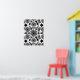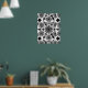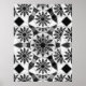 Impressão de um padrão mandala de doze pontos em tons de grafite e cinza prateada, acentuado com preto e branco