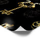 Padrão perfeito de chaves antigas, douradas e silhuetas em fundo preto.
