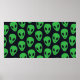 Poster Padrão uniforme infantil com aliens rostos ufo