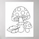 Um desenho animado bonito de cogumelos com prego vermelho de toadstool e uma folha seca. Feita para uma coloração fácil.