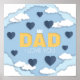 Melhor Pai Texto amarelo, corações voadores azuis, nuvens brancas no céu, suprimentos de festas Dias de os pais