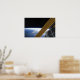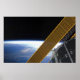 Painéis de matriz solar na Estação Espacial Internacional recuaram no horizonte da Terra em destaque com o STS-126.