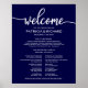 Um pôster de programa de cerimônia de casamento com letra azul marinho rústico chic. Adicione sua própria cor de fundo.