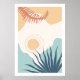 Conjunto de pôsteres de paisagem colorida abstrata com sol, lua e folhas de planta. Ilustração plana, modelos de impressão de arte contemporânea, fundos para redes sociais,