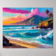 Uma pintura abstrato vibrante e moderna que retrata uma paisagem de praia, onde cores ousadas e giratórias evocam o movimento das ondas que se chocam contra a costa. Turquesa brilhante e azuis profundos representam o oceano, enquanto os pedaços de laranjas quentes, pinks, e amarelos simbolizam o pôr do sol lançando sua luz através da areia e da água. A abstrato forma-se unida num estilo dinâmico e fluido, captando a energia e a tranquilidade da paisagem. Escovas soltas e camadas de textura criam profundidade, permitindo ao espectador sentir a calma e o movimento da cena da praia. Use as ferramentas de design para adicionar texto personalizado ou personalizar a imagem.