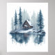 Poster Paisagem de Neve Aquarela com Cabina Lakeside