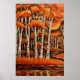 Esta pintura de abstrato de pássaros em folhas de queda laranja flamejante em contraste com o belo latido branco vai clarear qualquer lugar.