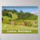 Paisagem de Verão na poster Suiça Um poster idílico de uma paisagem de verão de vacas a pastar numa pastagem verde na Suiça. Imagem por celeste@khoncepts.com