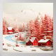 Um design charmoso com efeitos modernos em 3D com casas vermelhas, árvores de abeto e uma paisagem de inverno completa!