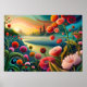 Poster Paisagem Floral Surreal: Abstrato River e Tower