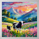 Uma pintura impressionante e impressionante impressionante impressionista de uma vaca-mãe e seu filhote em uma pastagem serena rural, deu vida com cores brilhantes e vibrantes e espessas escovas de abstrato. Os derrames dinâmicos capturam a ligação pacífica entre os animais, enquanto os ricos tons verdes, azuis e terrestres criam uma cena viva e pastoral. Esta trabalho de arte expressiva combina lindamente a natureza e a ternura, perfeita para adicionar calor e caráter a qualquer espaço.
