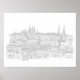 Uma impressão do meu desenho a lápis de Armagh no estilo de uma paisagem urbana mostrando muitos dos edifícios notáveis da cidade, incluindo as duas catedrais, muitas igrejas, os edifícios georgianos do Mall, os palácios dos bispos, as ruínas do convento franciscano, museus, o Observatório, a estátua da menina que comemora o desastre ferroviário de Armagh.