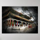 Um tiro dinâmico do Santuário Interior do Palácio de Verão em Pequim, China. As cores ricas, a intrincada pedra, e o vento soprando árvores criam um cenário mágico evocando o esplendor de uma era passada.