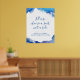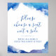 Símbolo de casamento impresso com uma borda azul-abstrato de aquarela para coordenar com a nossa coleção de Ocultos Sapphire. O texto diz "Escolha um assento, não um lado. Somos todos família assim que o nó estiver amarrado!" Use as ferramentas de design para editar o texto, as fontes e as cores ou carregar suas próprias fotos para criar um único sinal de boas-vindas de casamento.