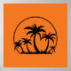 Vector illustration of a tropical sunset and palm trees on a small vacation island paradise.