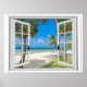 Tropical beach ocean view, fake window scene, for a windowless office. Very realistic landscape optical illusion poster that would look great on an office or study wall.