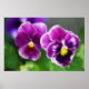 Duas brilhantes pansias roxas contra um fundo verde. O original é uma pintura em miniatura de óleo por Kathie Miller