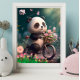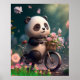 Poster Panda Fofa andando de Bicicleta com flores Arte
