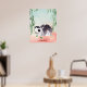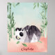 Ilustração de um urso panda preto e branco fofo caindo perto de bambu em aquarela verde. É um excelente design para amantes de pandas ou fãs de animais super fofos. As cores são pastéis e parecem uma pintura em aquarela. Esta impressão vai alegrar qualquer quarto ou sala de brincar de crianças. Pode ser personalizado com o nome da sua criança.