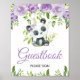 Poster Panda Purple Floral Greenery Bamboo Sinal Guestboo