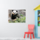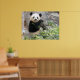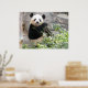 Foto maravilhosa da vida selvagem de um Panda relaxando enquanto ele mastiga um caule de bambu.