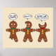 Engraçado pães-de-gengibre em paródia, paródia, aos coelhos coelhos que dizem "Meu bumbum dói". Estes 3 biscoitos engraçados de gengibre com bolhas de fala. O primeiro homem de gengibre tem uma mordida na perna e diz: "Minha Perna Magoa!", o outro tem uma mordida na orelha e diz: "O quê?", os olhos do terceiro já foram comidos e ele diz: "Onde vocês estão as caras?". Especialmente divertido para a Festa de Natal. Um desenho animado do Gingerpão bonito. O fundo claro bege/colorido castanho pode ser personalizado e alterado para qualquer cor.