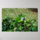 Pintura de papagaio verde selvagem no arbusto verde em um parque na Espanha. Também conhecido como periquito Monge ou papagaio Quaker