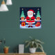 Um Papai Noel alegre, vestido tradicionalmente, cercado por decorações e ornamentos sazonais, simbolizando a alegria e o calor da época natalícia.