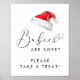 Um bom favor e um bom sinal para o seu chá de fraldas natalício que mostra "Bebês são doces, por favor, façam um tratamento" numa mistura de um roteiro elegante com um inchaço cardíaco e uma simples tipografia, e uma aquarela de chapéu vermelho de Papai Noel.
