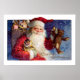 Decorre sua parede com um belo poster natal vintage com Papai Noel com um ursinho e Krampus em uma caixa.