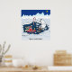 Papais noeis dizem, ""!@#$*% Mudança Climática", enquanto seu trenó afunda em alguma água e renas pendura em um gelo flutuando com um urso polar.
