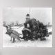 Esta é uma fotografia antiga mostrando um Papai noel com renas de peru.