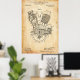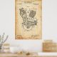 Poster de patente do motor de combustão interna em papel antigo como o do outro. Correspondendo itens em nossa loja.