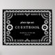 Este elegante, porém moderno, letreiro para recepção de casamento inspirado em papel picado apresenta uma bela moldura ornamentada em branco, um fundo preto elegante e tipografia festiva. Personalize este modelo como um letreiro de mesa para brindes, livro de visitas, cardápio, buffet, etc. O tamanho padrão é 5" x 7", que se ajusta bem a uma moldura de foto de tamanho padrão que pode ser colocada em uma mesa.