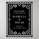 Este elegante e moderno papel picado inspirou o sinal de boas-vindas do casamento mostra uma bela estrutura de ornamentado em branco, um fundo negro e a tipografia moderna. Esta elegante, porém moderna design é uma escolha fabulosa para um casamento de Latinx ou para o casamento de destino do México. Todo o texto é personalizável, basta clicar no botão "personalizar" para o texto. Veja a coleção para mais peças de coordenação!