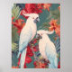Linda imagem de um par de coquetéis sentados em uma árvore florida. A trabalho de arte tem um sentimento tropical.