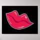 Um par de lábios vermelhos brilhantes com um pouco de brilho e um contorno roxo e amarelo. Os destaques brancos sutis dão-lhe um olhar brilhante. O fundo preto faz as cores pop!