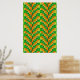 Um padrão de ilusão óptica multicolor em cores dramáticas.
