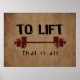 Este elegante design de grunge diz "Para Levantar...isso é tudo" com um conjunto de vísceras entre os dois. Perfeito para fisicultores, elevadores de peso, elevadores de potência, treinadores pessoais, ginástica e instrutores de E.P. e tantos outros.