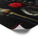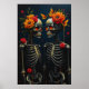Este poster de arte de parede impressionante apresenta dois esqueletos intricadamente detalhados, voltados um para o outro, seus soquetes oculares brilhando com uma luz quente e ouro que irradia a vida dentro da morte. Adorados com girassóis laranja vívidos, rosas vermelhas ferozes e folhas verdes delicadas, suas coroas se rompem com cor e simbolismo. Borboletas monarcas dançam graciosamente acima e entre elas, representando transformação e conexão eterna. Tons de fundo escuros e ricos fazem as flores vibrantes e os olhos brilhantes pop, criando um contraste dramático e cativante. Uma mistura perfeita de beleza macabra e celebrações vibrantes, essa peça evoca temas de amor, mortalidade e o eterno ciclo de vida.