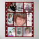 Este pôster é projetado para homenagear a memória de alguém em uma Celebração de Memória ou para ser exibido em sua casa. As fotos são configuradas como um modelo para serem substituídas por fotos da pessoa lembrada. "Em Memória Amorosa" está no topo. O fundo é vermelho com bordas de margaridas brancas em cada lado. Se precisar de ajuda para personalizar, entre em contato comigo em jen@jenaleefamilystorykeeper.com