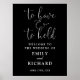 Este sinal de boas-vindas de casamento com letra elegante preta e branca pode ser personalizado com todas as informações especiais do seu dia de casamento. Criado por Thisisnotme©